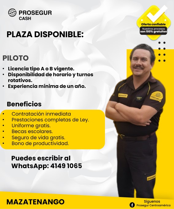 *Ofrecemos salario atractivo más bonificación, entre otros*